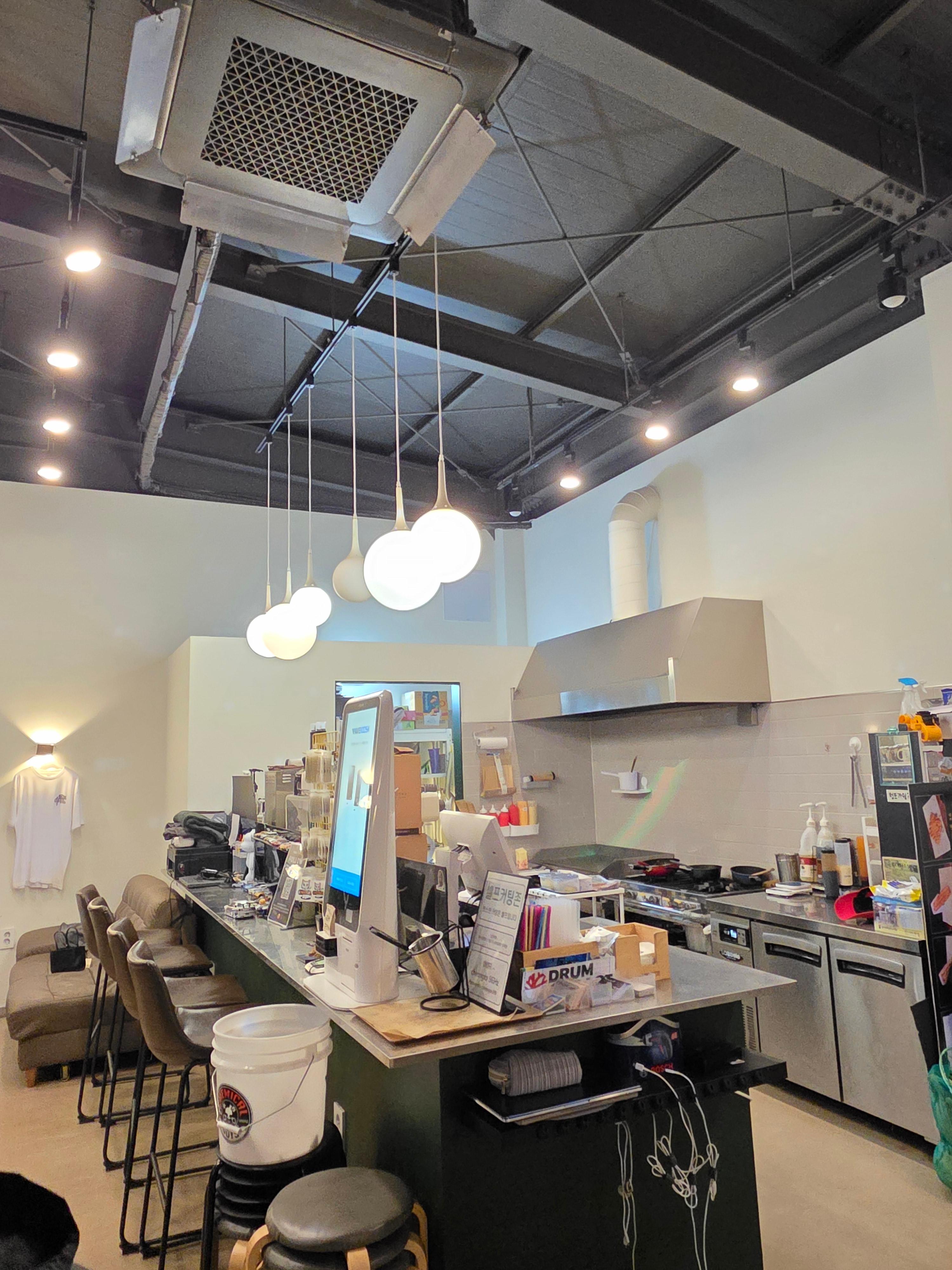 카운터 옆으로는 조리 공간이 잘 갖춰져 있어 음료나 식사 메뉴 주문이 빠르게 나온다.